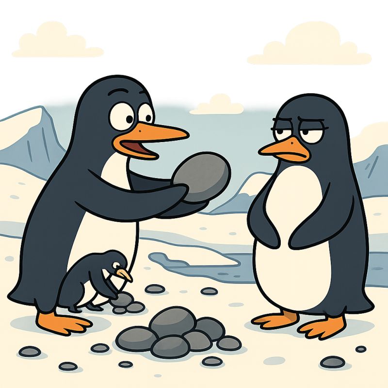 Yet behind the cuteness lies a nugget of tough science — and proof that love isn’t just hearts and flowers, but flippers and geology. Penguins show that courtship is about impressing a partner, sharing resources, and — above all — finding someone who appreciates your taste in architecture. (Bonus points if they’re okay with you stealing from the neighbors.)